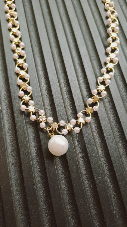 گردنبند مرواریدی ترکیب استیل و مروارید