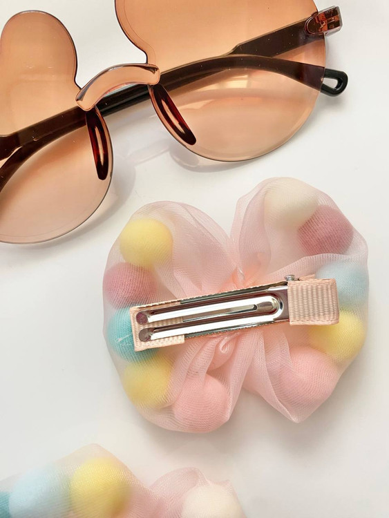 یک عینک نیمه دودی طرح کیتی با دو تا گیره انبری توپ توپی زیبا