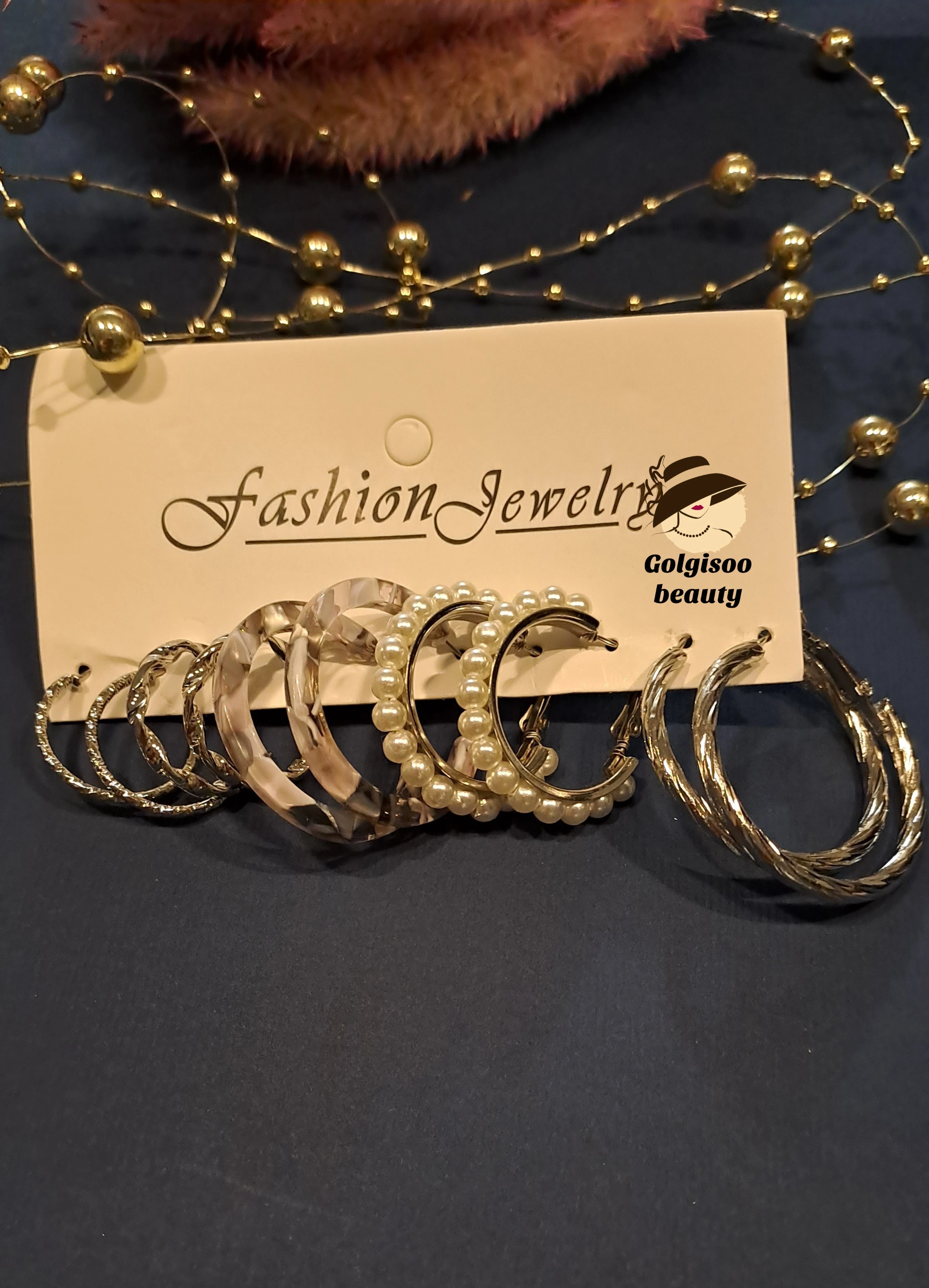 پک گوشواره حلقه ای فلزی، مرواریدی و یو پی وی سی