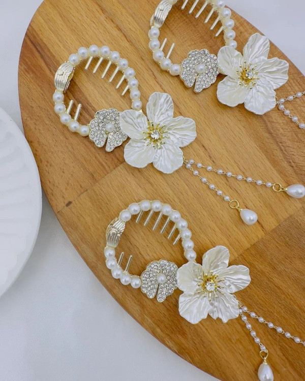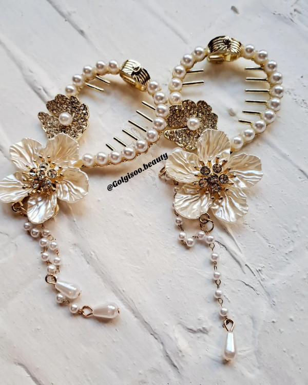 شینیون سه سوته با این گیره گوجه ای زیبا که ترکیبی از کریستال و مروارید هست